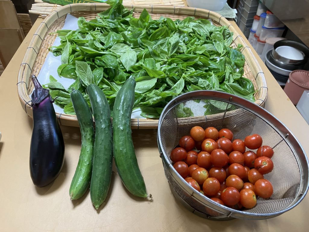 今年はきゅうりにトマト、なすにバジル、ブルーベリーも結構収穫できています