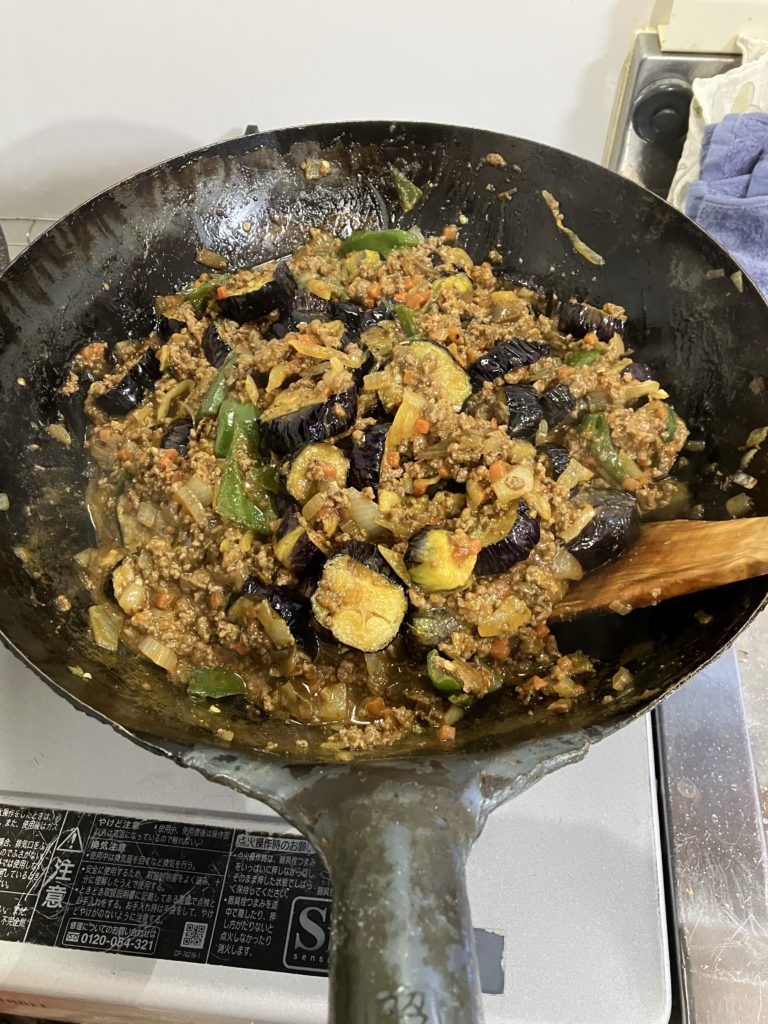 なすのドライカレー なすカレー 2025年2月24日(月)晴れ なすたっぷりのドライカレー このカレーは我が家の定番カレーだったのですがパンに入れたら美味しいかなぁと思いやってみたら大ヒット商品です なすがごろとはいって美味しいと言ってくれます これをひとつひとつ小分けするのが実は大変 冷めたらやります 今日も金曜日の野の花パン屋のために仕込み頑張ります さてハチくんは? いつものデッキで日向ぼっこ中です By nonohana | 2025年2月24日 | 未分類 | ← かぼちゃのケーキ ラズベリーシフォン →