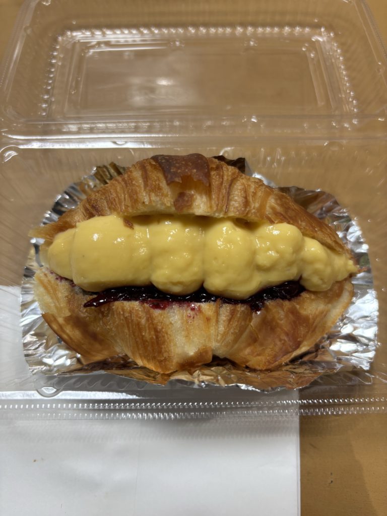最近始めたカスタードとブルーベリーをクロワッサンに挟んだパンです